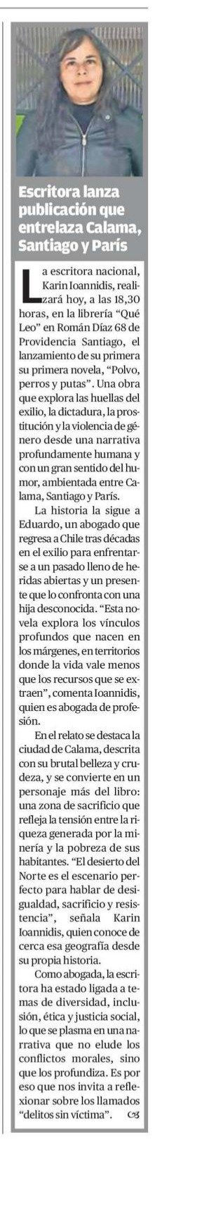 Entrevista Cambio21.»Polvo, perros y putas», novela de la abogada Karin Ioannidis, transita desde Calama -la ciudad conocida como la de las tres P- a Paris, con personajes marcados por el desarraigo y la lucha por la dignidad